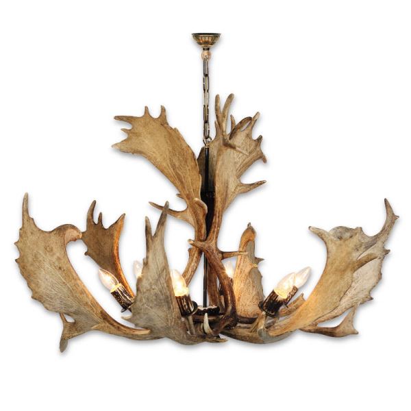 Lampadario con vere corna di daino. Luci: 6xE14 M: 100x100x75cm 154202